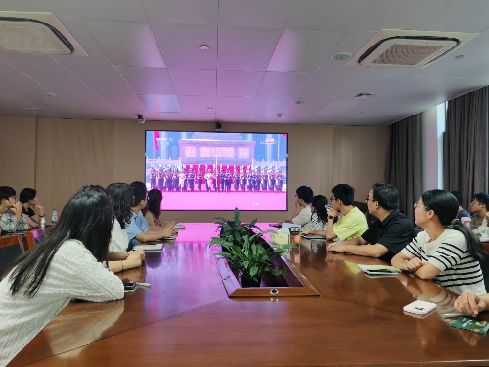 上午9点,理学院党委组织师生收听收看纪念中国人民抗日战争暨世界反法西斯战争胜利80周年大会直播活动。观看现场气氛庄严隆重,大会伊始,全体人员起立、齐唱国歌,随后师生们认真聆听了习近平总书记的重要讲话。雄壮的阅兵式在激昂的进行曲中拉开序幕,训练有素的人民军队方阵整齐、步履铿锵,彰显我国国防科技实力的“大国重器”铁甲奔涌、战机呼啸,透过屏幕传递出震撼人心的力量,仿佛穿越时空的历史回响,让在座师生们屏息凝望、心潮澎湃。八十载山河巨变,让大家读懂“强国必须强军”的担当,作为新时代的高校师生,在座师生誓以学报国,把今天的震撼化为讲台上的耕耘、教室里的专注、实验室间的研究,用青春接力复兴伟业,让和平的阳光永远照耀这片用热血捍卫的山河。