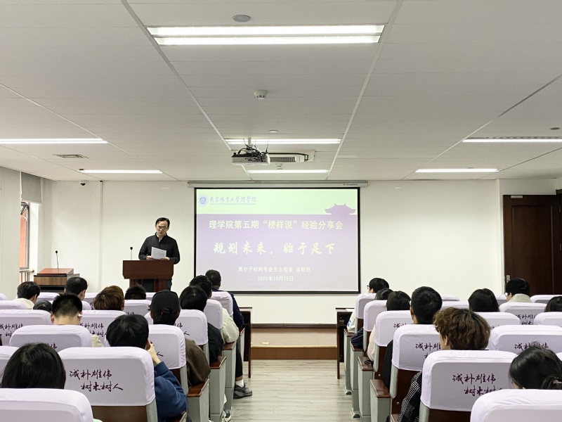 值南京林业大学123周年校庆之际,为强化校友与母校的情感纽带,发挥优秀校友的榜样示范作用,10月25日下午,理学院于教九楼9A404报告厅成功举办第五期“榜样说”经验分享会。本次活动特邀学院高分子材料与工程专业杰出校友、南京工业职业技术大学机械工程学院副院长余旺旺教授担任主讲嘉宾,分享个人成长与职业发展经验。学院党委副书记潘卿主持活动,百余位在校学生到场聆听交流。