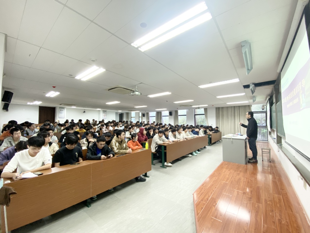 潘卿为2024级本科生深入剖析了当前的就业形势,着重阐释了考研对于个人学术深造、职业发展的重要意义,系统讲解了近三年全国考研形势与我院学生报考录取情况,并以详实的数据和图表展示,帮助学生准确把握考研动态与发展趋势。他指出,考研不仅是为了进一步提升专业素养,也是让自己能够在未来掌握更多的选择权,学院也将全力为考研学生提供支持,包括学习资源、专业指导以及心理辅导等。