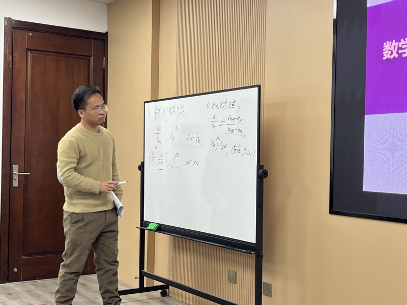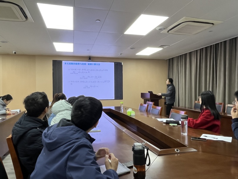活动于每周四上午9点开始,每次安排两位教师围绕竞赛与考研热点专题进行分享。陈磊老师就微分中值定理在竞赛与考研中的高频考点、分值分布等进行统计,系统梳理了各类中值点存在性证明的题型与方法;李赛老师以“极限计算”为主题,结合科研经验重点介绍了“估阶”方法在复杂极限问题中的运用;魏伟老师系统总结了一元函数连续性相关理论,并借助典型真题展示了如何利用单调性证明连续性;王怡与李云老师结合竞赛真题,全面阐述了一元函数求导与空间解析几何的常见题型与解题体系;冯梦雅老师围绕导数应用,深入探讨了利用单调性证明不等式的难点与处理策略;张云秀老师针对一元函数积分学,结合真题剖析了换元法与分部积分法的关键难点,尤其对分拆被积函数及隐函数积分中的换元技巧进行了探讨;吴景鹏老师则从数学分析教学与竞赛培训出发,通过解析北大等高校考研试题,梳理了多元函数极限与连续等核心知识点。
