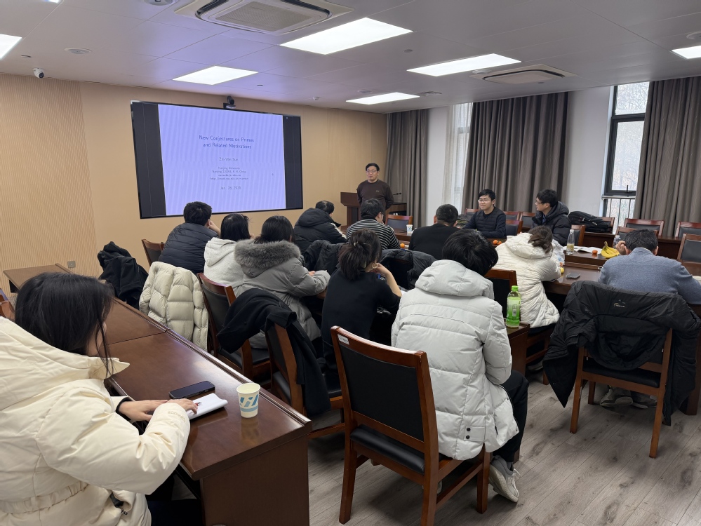1月28日下午,南京大学孙智伟教授做客“理学论坛”,在南山楼9A406作了题为“New Conjectures on Primes and Related Motivations”的学术报告。报告由院长助理王晨主持,应用数学系相关师生到场聆听学习。