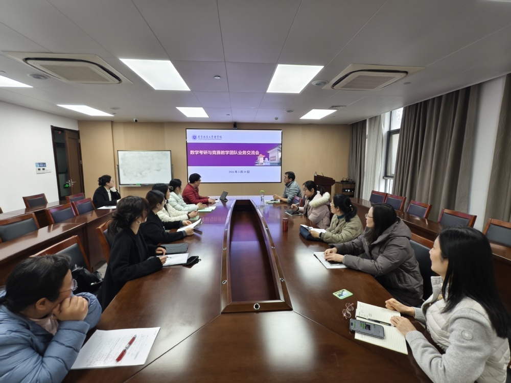 为持续提升数学考研与竞赛培训指导团队的业务能力,持续优化相关课程的教学质量,增强学生考研数学应试与竞赛备考的水平,更好地服务我校提升升学率重点工作,理学院定期于9A406开展数学考研与竞赛培训指导教师业务交流系列活动。活动由朱敏副院长主持,应用数学系考研与竞赛培训指导团队教师参会。